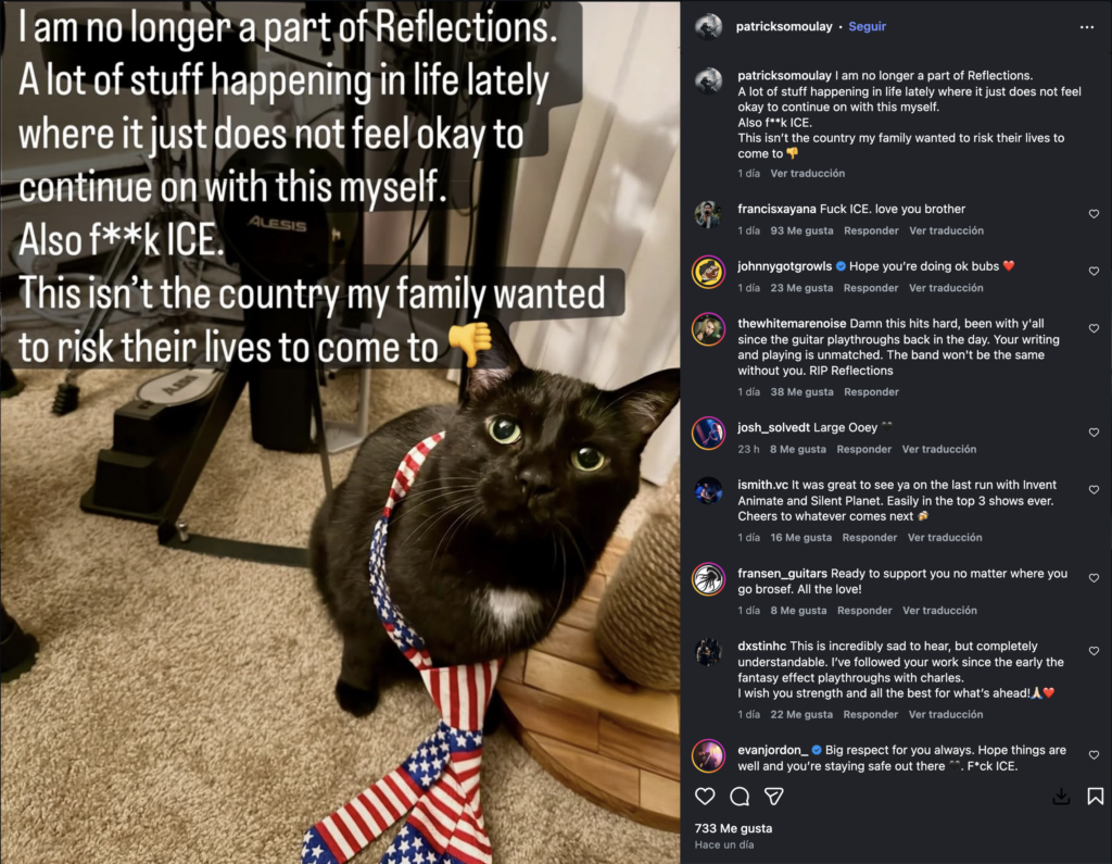 - Francis Xayana (Bajista): Fue el más tajante, afirmando en sus historias de Instagram: «Jake es un apologista de ICE y no voy a joder con alguien así… No puedo confiar en una persona que piensa que esto es necesario». También sugirió que Wolf siempre ha tenido el control absoluto de la banda, lo cual desgastó la relación.